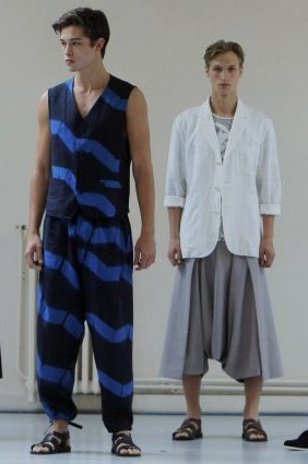 Issey Miyake’s spring-summer 2012 collection looks cool and at the same time gives feel of salwar, it’s a Japanese label which once was on fashion’s cutting edge, but after the departure of its founder it has failed to duplicate its earlier successes. In a bid make new inroads among young consumers, the brand has recently brought in a new young creative director who comes up with this collection which has resemblance with salwar, commonly worn in Pakistan.